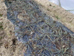 | 2024年1月9日 体調不良で遅れていた初夏収穫のネギ苗を1ヶ月遅れで植えつけました。 今年で3年目です。1年目は苗が大きくなりすぎ一部トウ立ちしました。去年はトウ立ちもなくネギがあまり出回らない時期においしいネギが収穫できました。 3月頃までトンネルで栽培予定です。 |