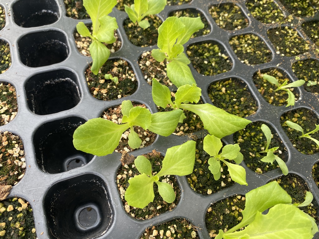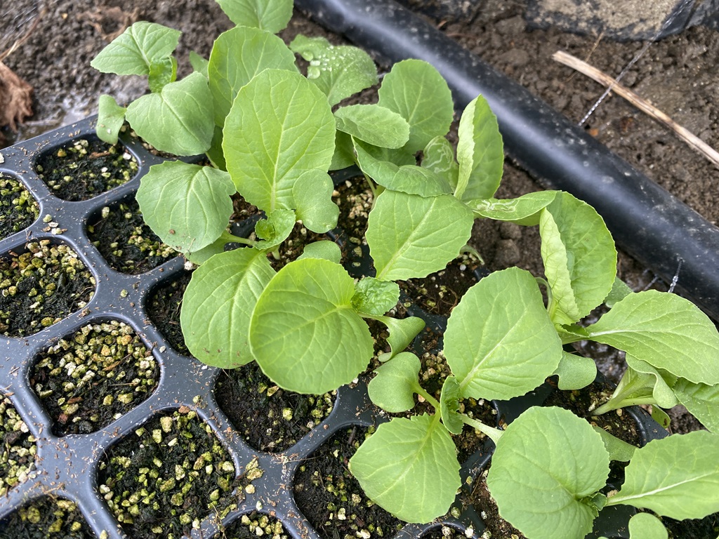 | 2025年8月26日 冬野菜の苗が順調に生育中です。レタスとミニハクサイです。 |