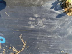 | 2025年9月16日 犯人の痕跡です。落花生を荒らしまくったあと、足跡を残していきました。 ここ2年トウモロコシも全滅しているので必ず捕まえます。 |