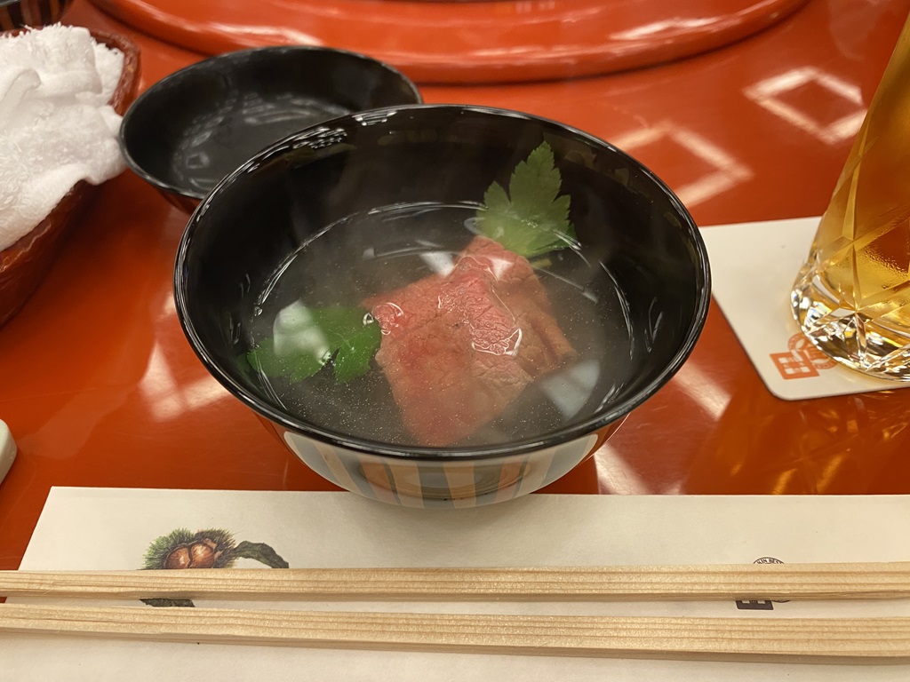 | 2024年10月2日 勤めている会社から営業目標達成したので三重県松阪市にある「和田金」という松阪牛のお店に連れて行ってもらいました。 ●前菜です ●ステーキです。ナイフいらずで箸で切れました ●すき焼きにしてたべました。醤油ダレ・塩ダレと味変を堪能しました |