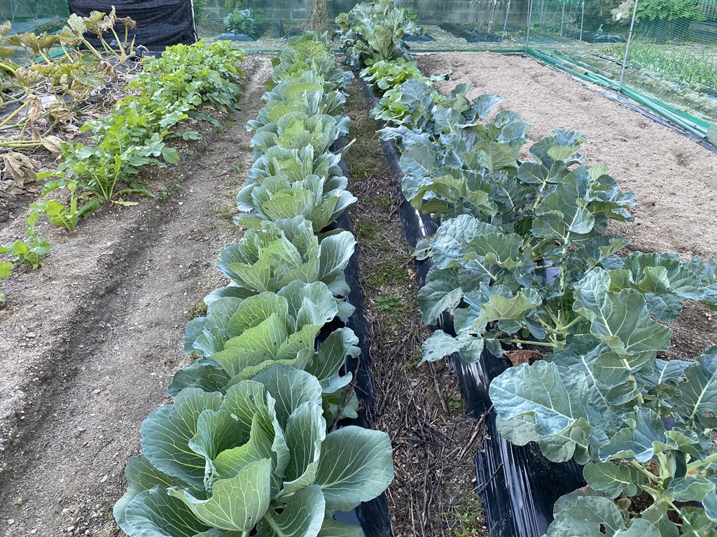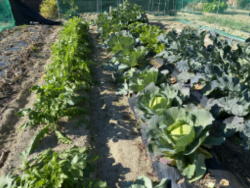 | 2025年11月6日 キャベツとブロッコリー、ミニハクサイです。9月10月は害虫が酷かったですが、11月に入り落ち着いてきました。正月ぐらいには収穫できそうです。 犯人を捕まえたかと思ったらネコでした。猫も畑や庭の芝に糞をしていく悪者です。少し脅して近づかないようにしました。 |
