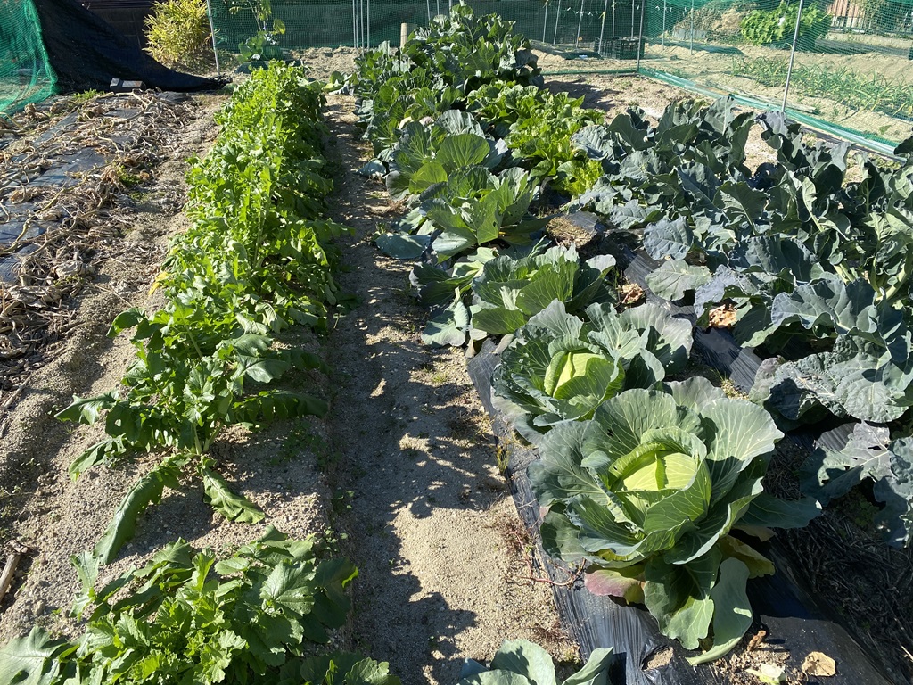 | 2025年12月9日 毎年育てている春ネギを今年も植えました。苗が足らず1列植えれませんでしたが、毎年食べきれないのでちょうど良いかもしれません。数日後には寒さに備えビニールかける予定です。 キャベツが収穫時期を迎えました。毎年栽培している「サトウくん」です。甘くてとってもおいしいです。これ以外のおいしいキャベツは無いと思っていますが、奥に植えているのは冬に穫れる春系キャベツ(ガッチリしてなくふわっとしたキャベツ)です。品種は「浜岬」と「輝岬」です。 みかんやレモンも収穫できています。今年は豊作です。 |