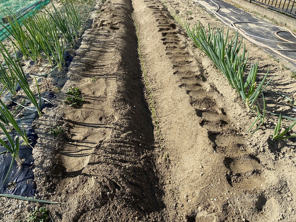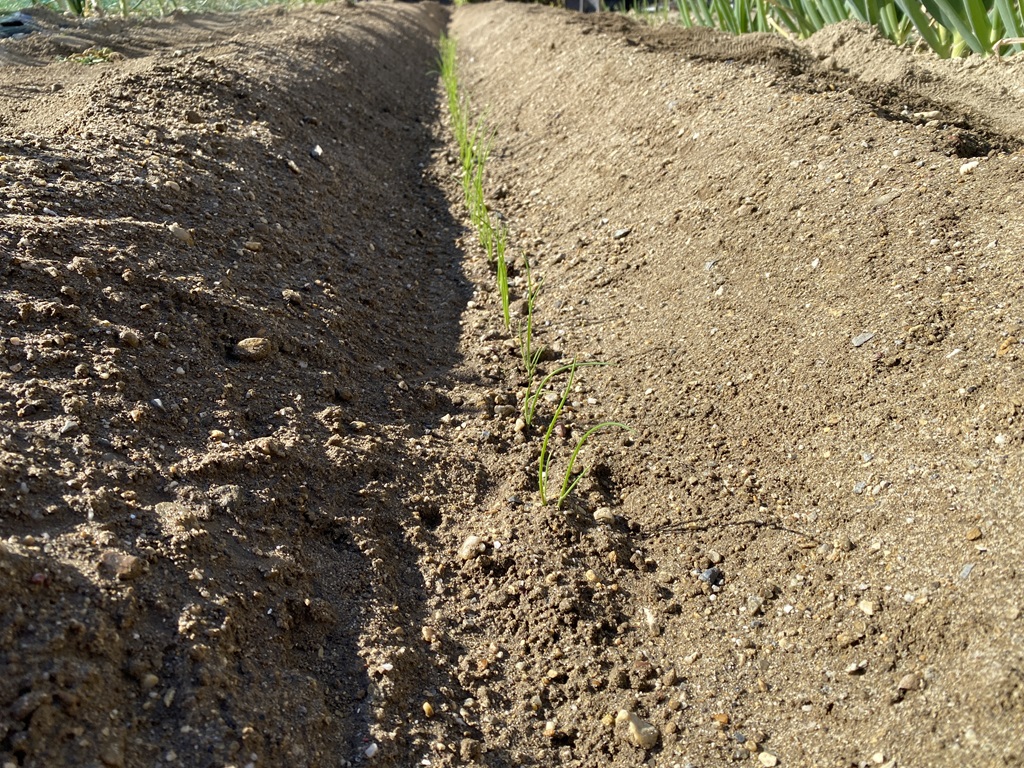 | 2024年10月26日 タマネギを植え付けました。夏野菜も植えないといけないので、5月までに収穫できる、極早生、早生の品種です。 |